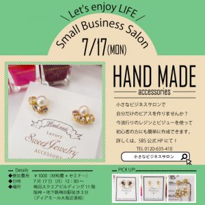 皆さん三連休はいかがお過ごしになられるご予定でしょうか? 小さなビジネスサロンでは 7/17(月)の祝日にハンドメイド教室が開催されます(^^♪ 前回・前々回とご好評を頂きました 人気教室が開催されます‼ レジンとビジュ […]