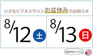 小さなビジネスサロンお盆休みのご案内★
