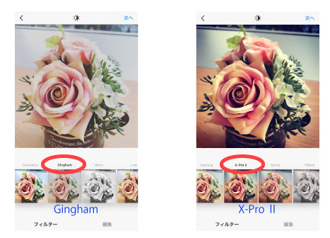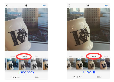 左が「Gingham」、右が「X-Pro Ⅱ」