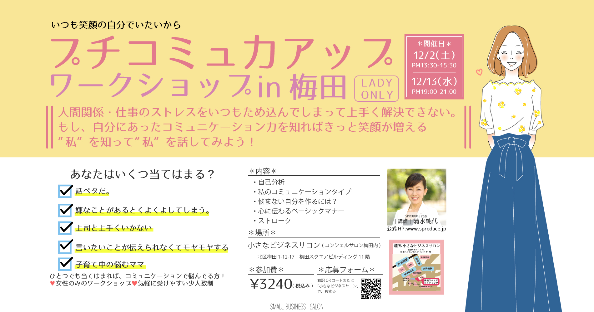 小さなビジネスサロン12月に新ワークショップ開催決定致しました^^