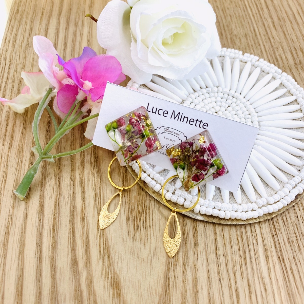 レジンで好きなドライフラワーを固めて作るそうです♡