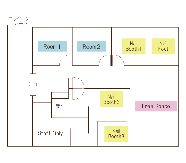ネイルブースでは、ネイルブース1とフットネイルは個室のお部屋になりました✨