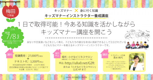 ので受講後に認定試験(記述形式)を受け、合格すると自身でキッズマナー講座を