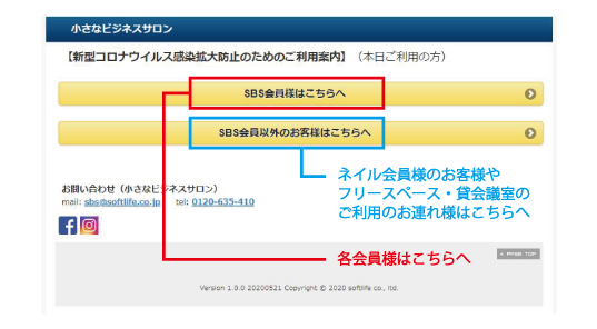 各会員の方は、 “ SBS会員様はこちらへ ” へ進んで下さい。